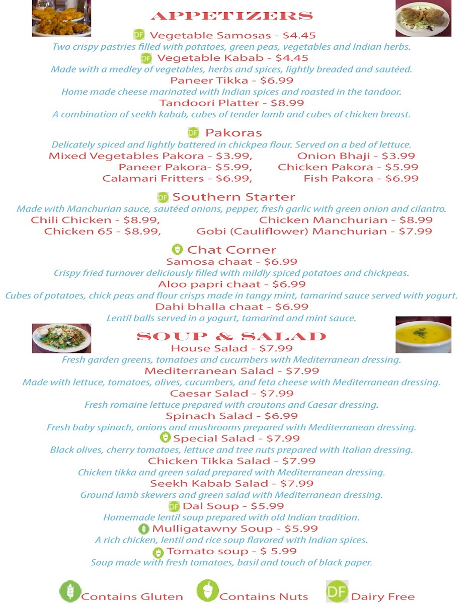For soup and salad lovers, the House Salad and Caesar Salad provide fresh, flavorful options, complemented by Mediterranean dressings. The real stars are the curry specials, crafted with care—try the Vegetables Curry or the spicy Vegetables Vindaloo. Each dish is served with fragrant basmati rice, and you can choose your spice level from mild to fiery hot.